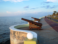 The city of Campeche is an example of urbanism in a baroque colonial city, with a reticular and regular plan, its urban trace, a model of colonial port cities, reflects the main role that it played as a commercial, religious and military connection point characterized by its high level of integrity and homogeneity. More than one thousand buildings with a historic value have survived as witnesses of space and temporal superimposition of several significant historic periods of Mexico. Due to the constant attacks of both English and Dutch buccaneers and pirates such as Francis Drake, John Hawkins, Laurens de Graaf, Cornelis Jol, Jacobo Jackson, Jean Lafitte, Francisco de Grammont, Bartolomé Portugués, William Parker, Francisco Nau, Edward Mansvelt, Henry Morgan, Lewis Scot, Roche Braziliano and Michel de Grammont for almost 160 years, in 1686 the government started to fortify the city. The French engineer Louis Bouchard de Becour was commissioned to unify all the defensive works that surrounded the city with a wall. At its completion, the wall surrounding the city of Campeche was 2,560 meters in length, forming an irregular hexagon around the main part of the city, with eight defensive bastions on the corners. These bulwarks now serve different functions: Santiago: Used as the Botanical Garden 'Xmuch´haltún'. Reconstructed. San Pedro: Former prison. San Francisco: Protects the Land Gate. Houses the library of the INAH. San Juan: Protects the Land Gate. Nuestra Señora de la Soledad: Also protects the Sea Gate. It is the largest one and holds the Museum of City History. San Carlos: Holds the City Museum. This fort was the first one built. Protects the Sea Gate. Santa Rosa. It also contained four gates to allow access to the main quarters. The main entrances are the Puerta de la tierra ("Land Gate"), built in 1732, and the Puerta del mar ("Sea Gate"). The Land Gate is kept as a tourist attraction, having a light and sound show three nights each week and keeping original supplies and items from the 17th century. The other gates were Guadalupe and San Román, connecting to the outside neighborhoods. Additionally, two main forts protected the city from two nearby hills on each side, the forts of San José el Alto (built in 1762) and San Miguel. These forts gave long-range artillery coverage and served also as look-outs. They were built before the walls of the city. The fort of San Miguel is used as a museum and houses a collection of pre-Hispanic items. The fort of San José houses a collection of boats and weapons of the period.